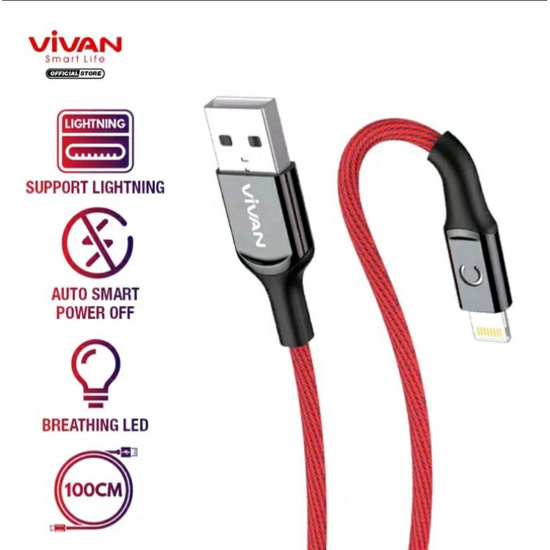 kabel charger hp/kabel data/kabel lightning/kabel FAST charging/autodisconect VIVAN VZL100 iphone