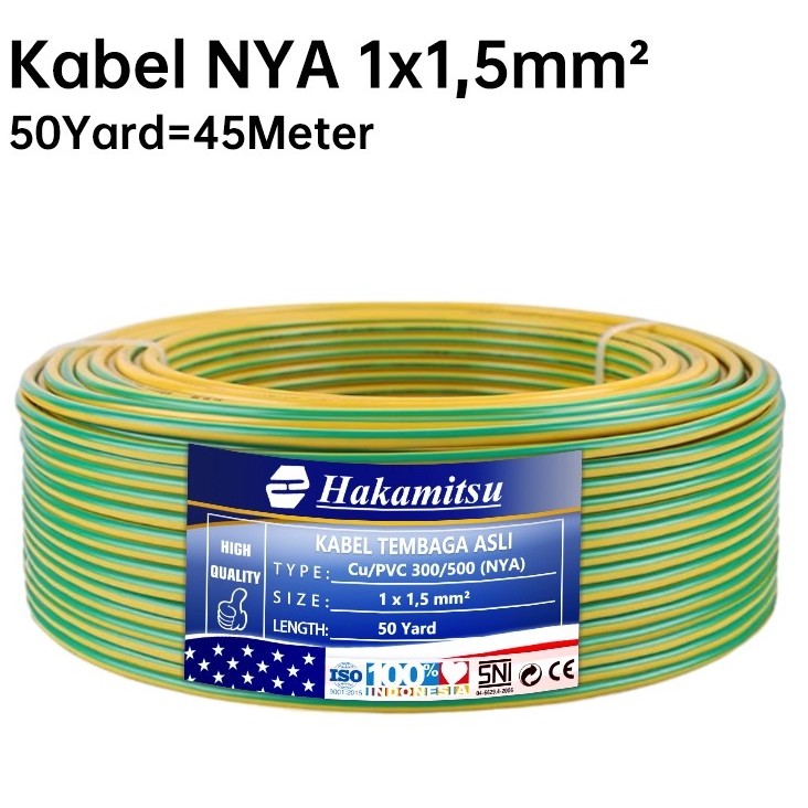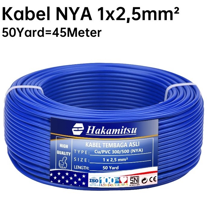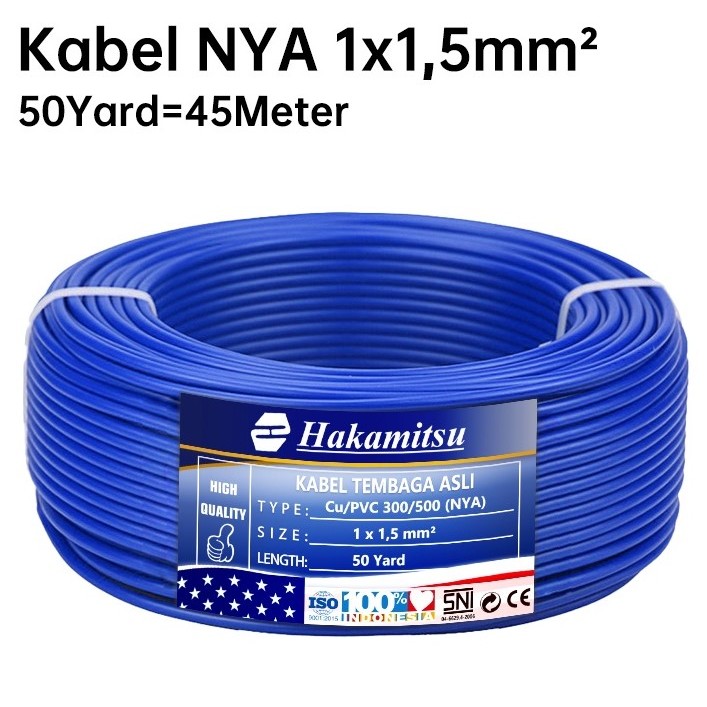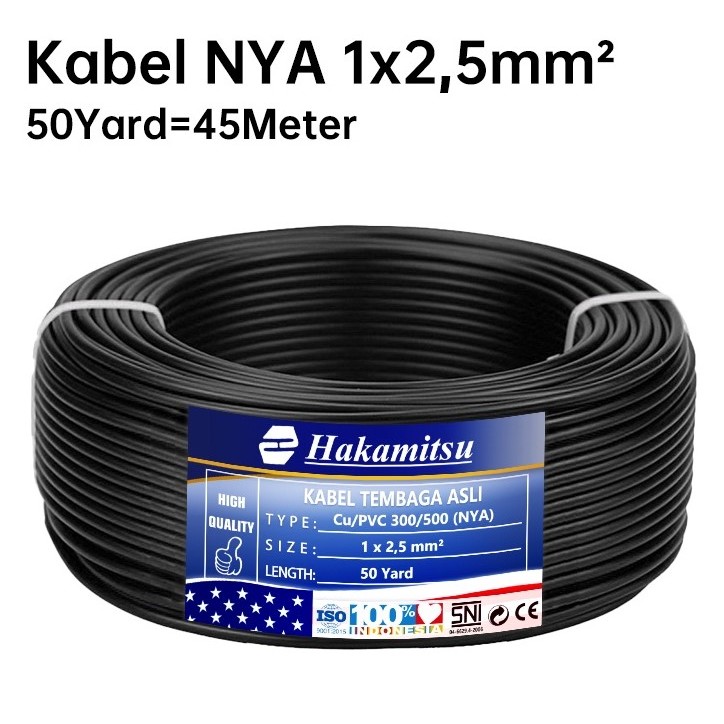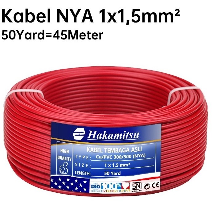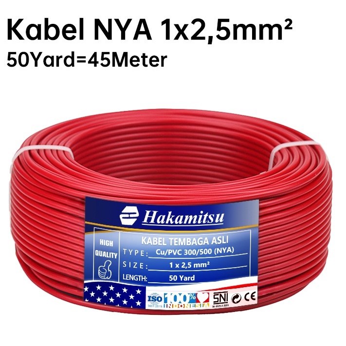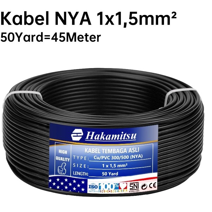 kabel tembaga asli paling murah HAKAMITSU Kabel Kawat NYA 1 x 1,5mm 2,5mm 50 Yard Full / Kabel Listrik Tembaga Murni PVC SNI / Mrek Hakamitsu