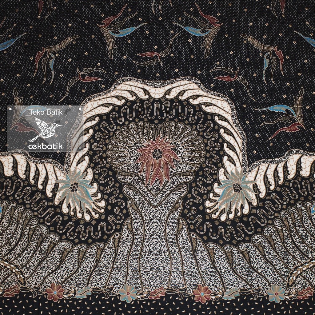 kain batik - Motif Batik Modifikasi Parang Bunga Unik (Hitam)