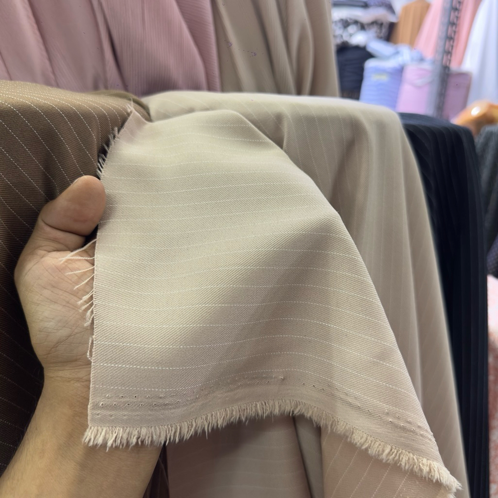 kain semiwool import salur hitam ( harga per meter )