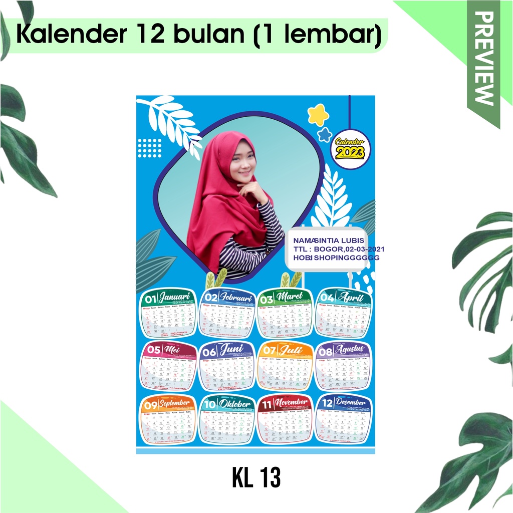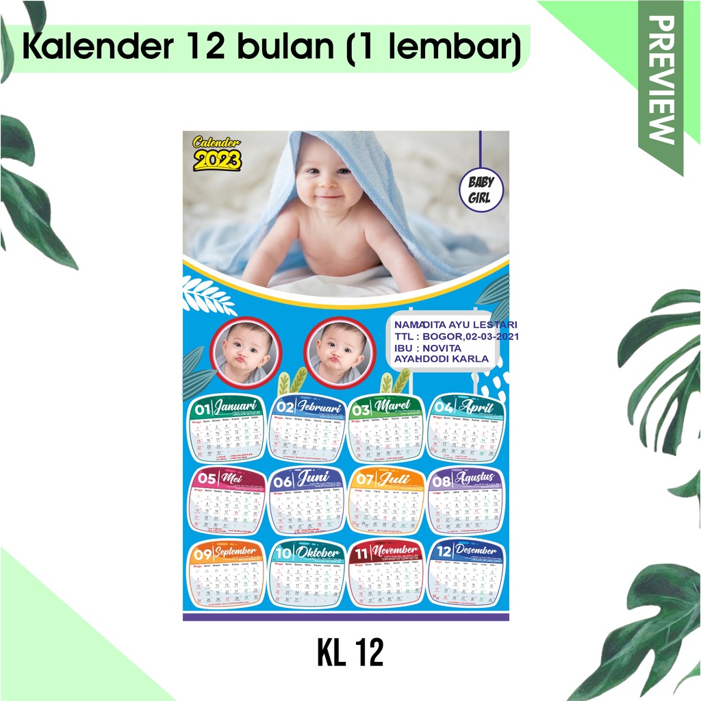 kalender 2026 12 bulan ( 1 lembar )