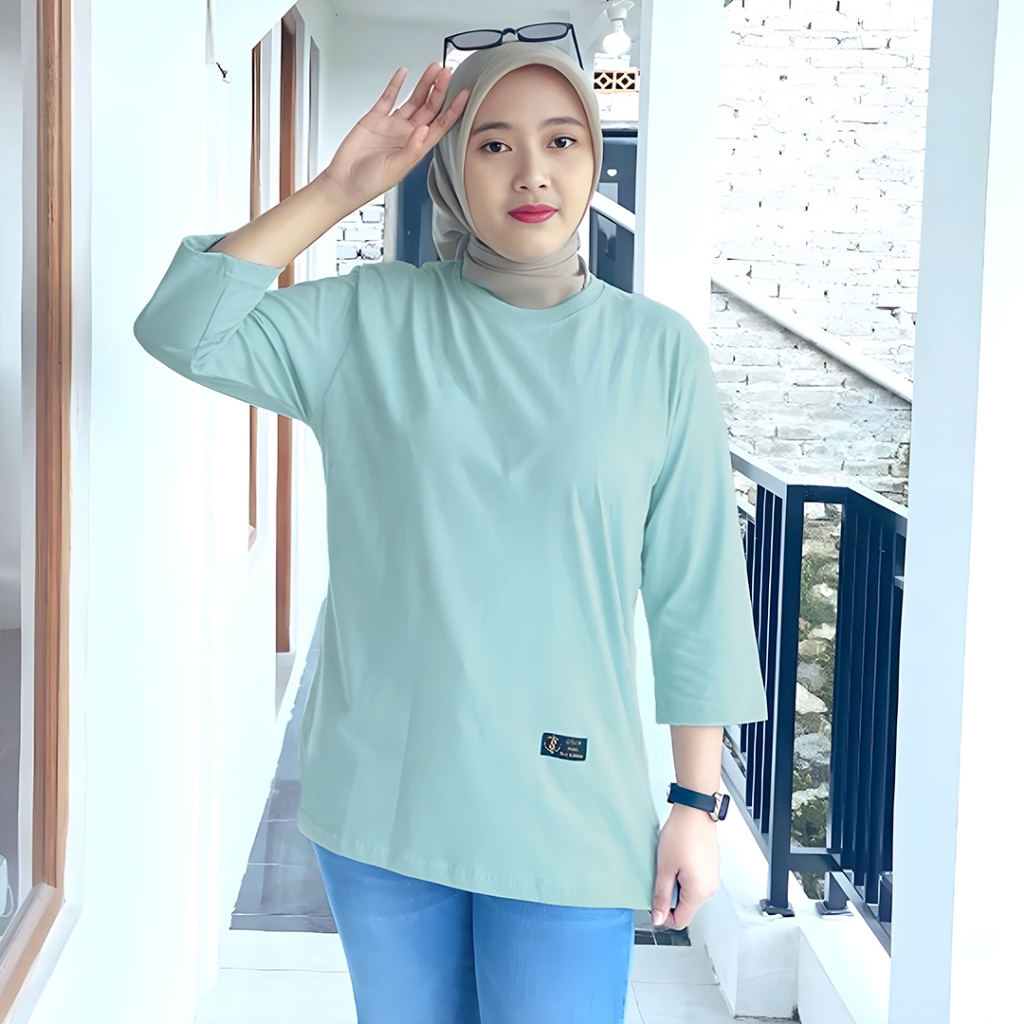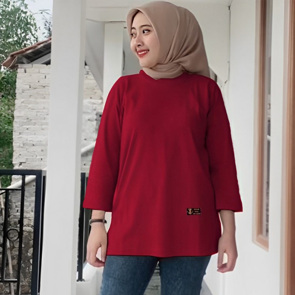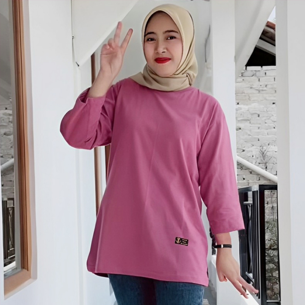kaos lengan 7 8 wanita oversize jumbo baju kaos cewek oversize kaos polos oversize lengan panjang bahan katun 24s tebal