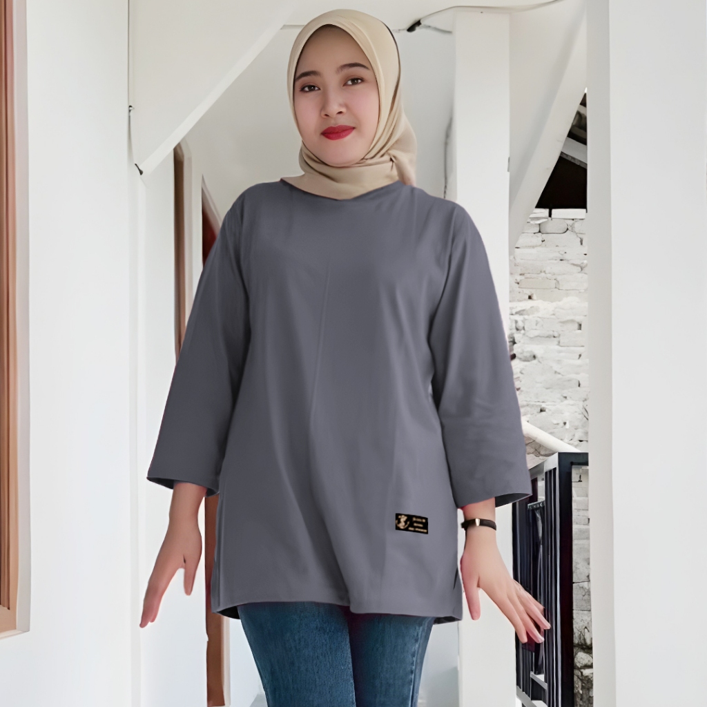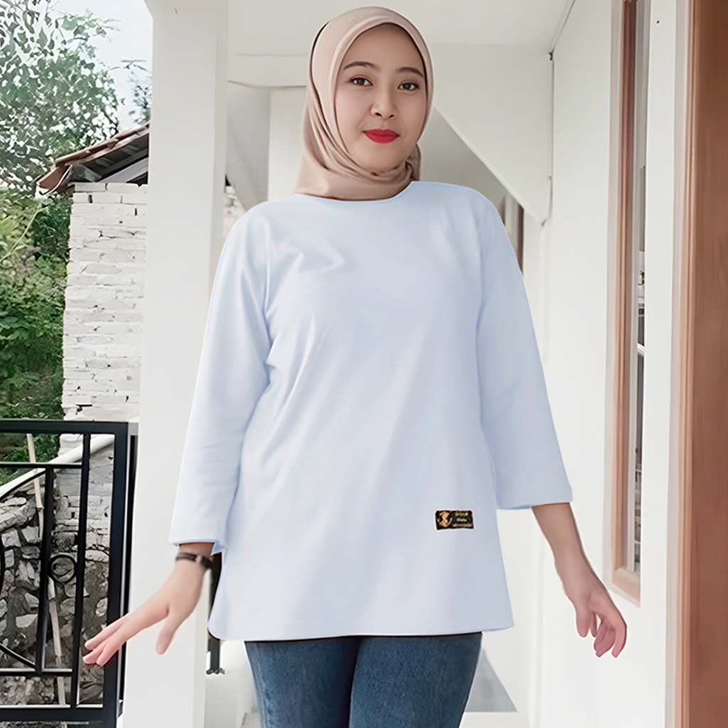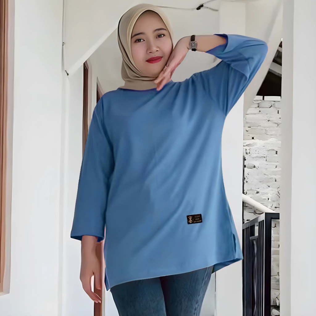 kaos lengan 7 8 wanita oversize jumbo baju kaos cewek oversize kaos polos oversize lengan panjang bahan katun 24s tebal