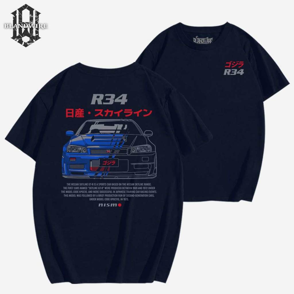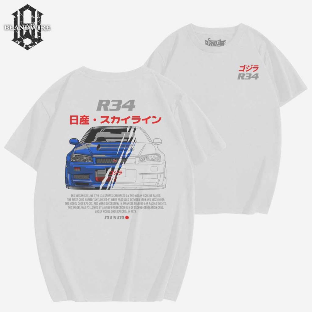Kaos Pria Otomotif Nissan GTR R34 Premium Eksklusif | Tshirt Otomotif Mobil JDM | Cotton Combed 24s & Sablon Plastisol Tahan Lama | Baju Handmade Desain Manual