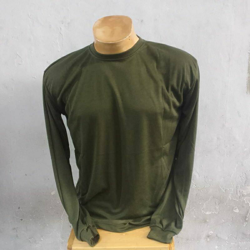 kaos polos lengan panjang hijau TNI gelap oblong/kaos dalam hijau army