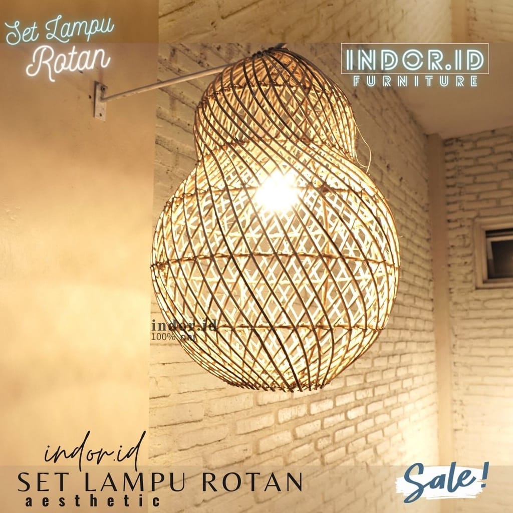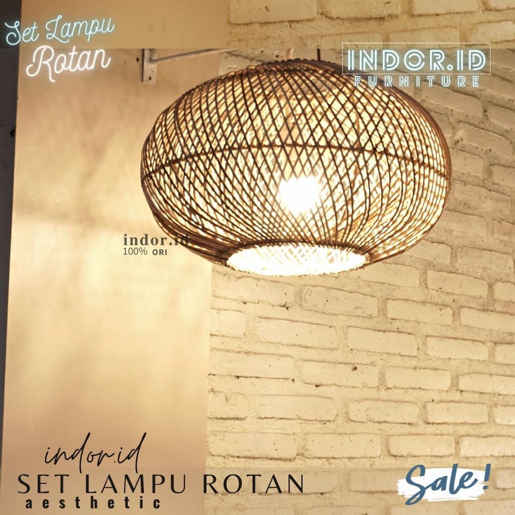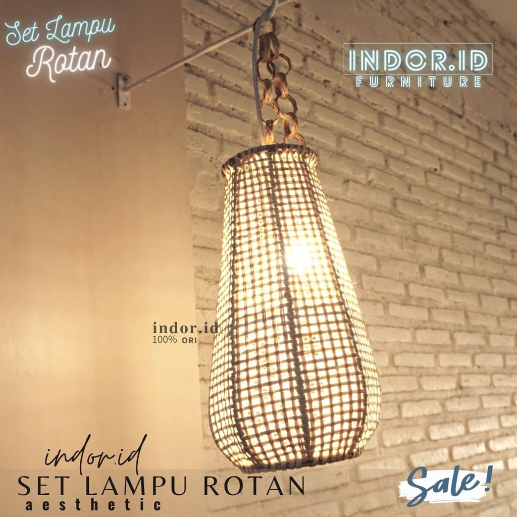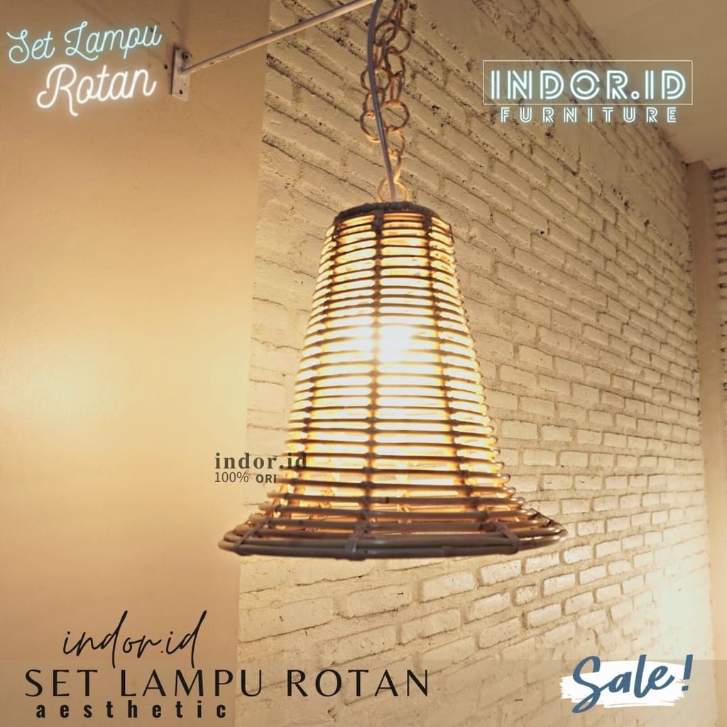 kap lampu gantung rotan, set lampu hias rotan