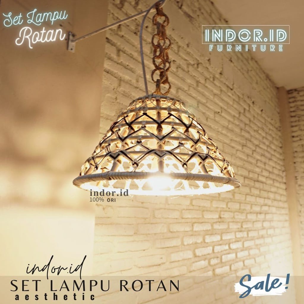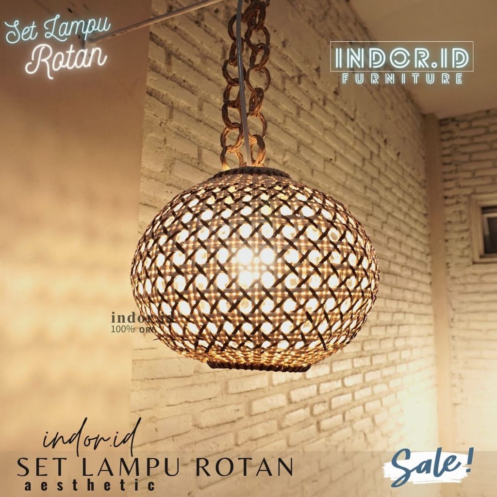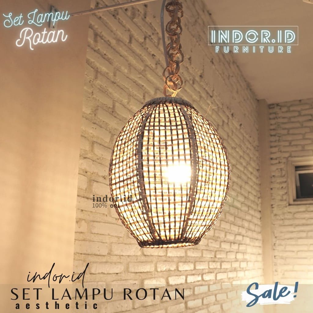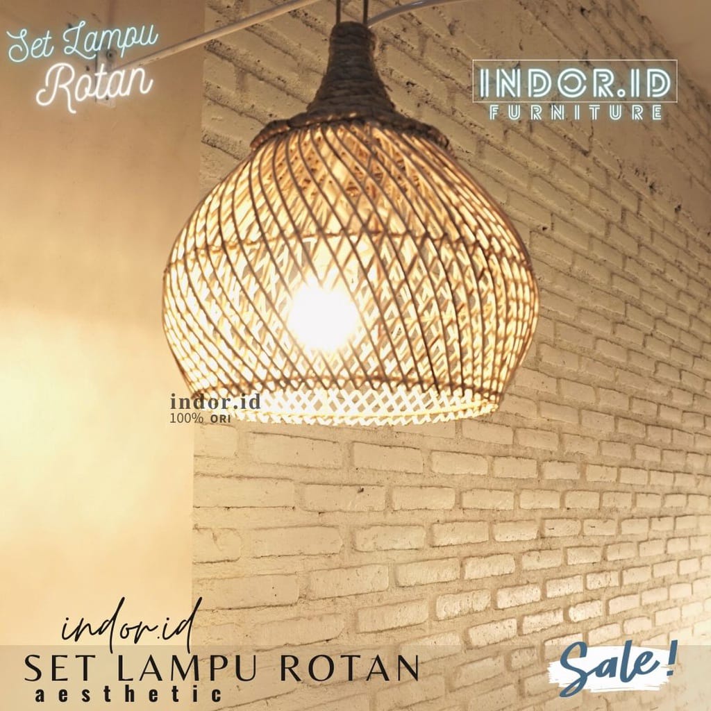 kap lampu gantung rotan, set lampu hias rotan