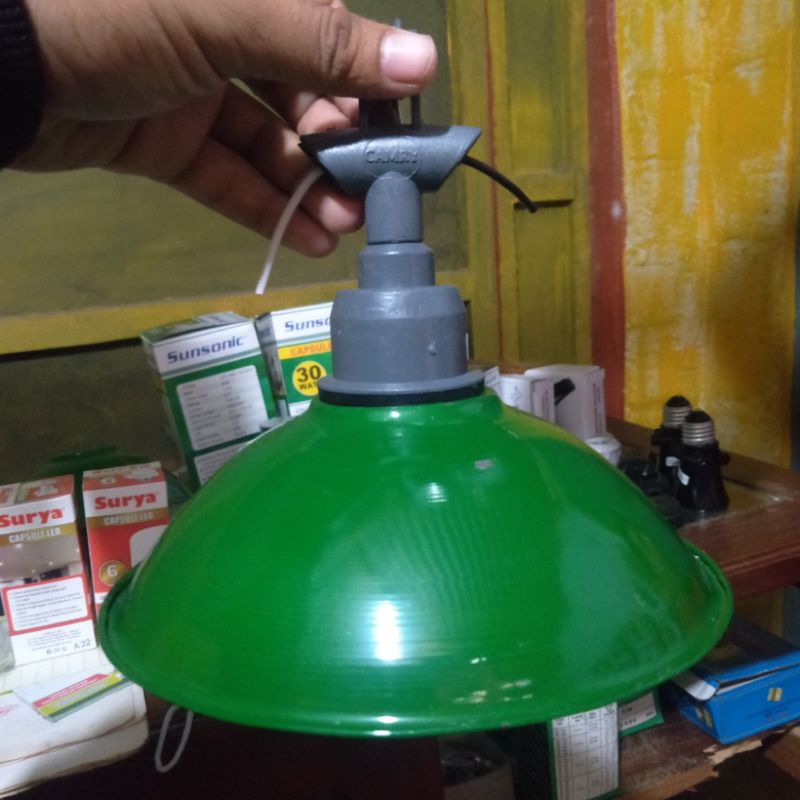 kap tutup lampu jalan hijau + fiting lampu kramik set komplet