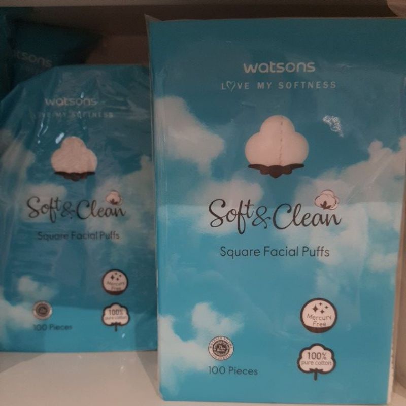 kapas wajah murah watsons soft and clean square facial puffs 100 pieces