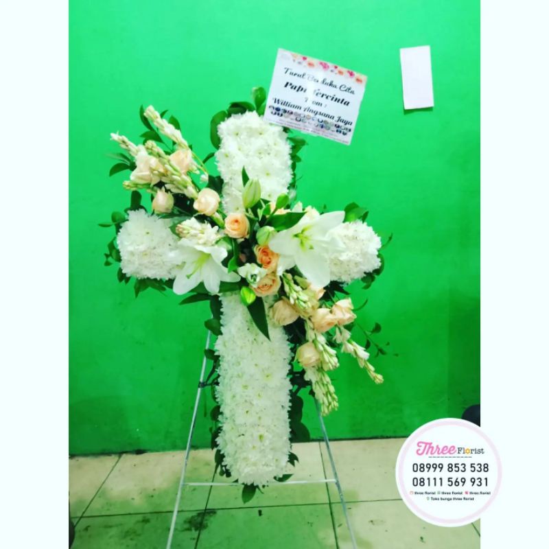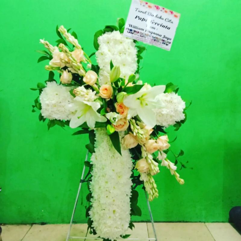 karangan bunga salib duka cita / bunga salib /bunga salib dan standing / bunga salib rumah duka