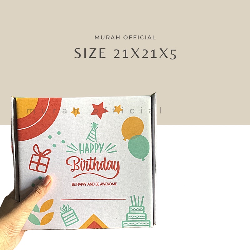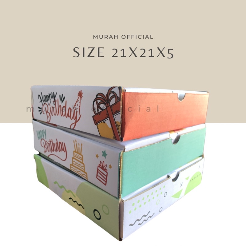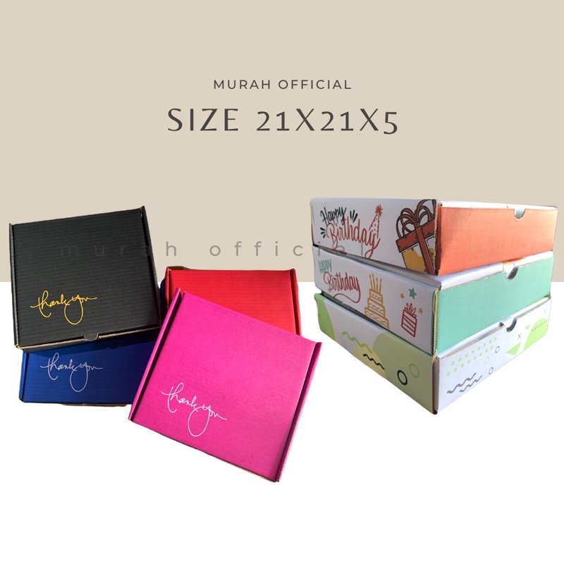 kardus 21x21x5 box warna merah hitam putih biru pink corak abstrak happy birthday kotak kotak kue brownies cookies souvenir karton coklat box hijab packaging hampers murah