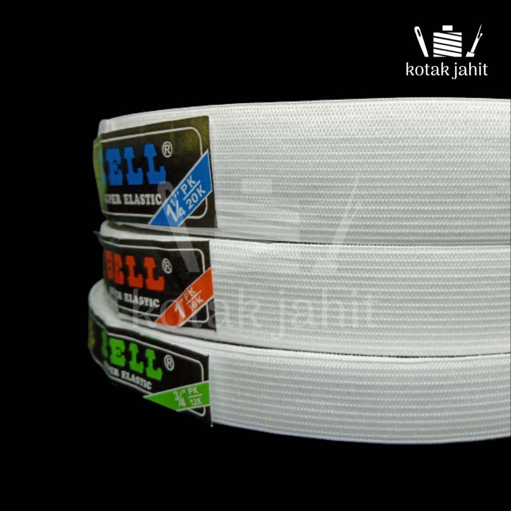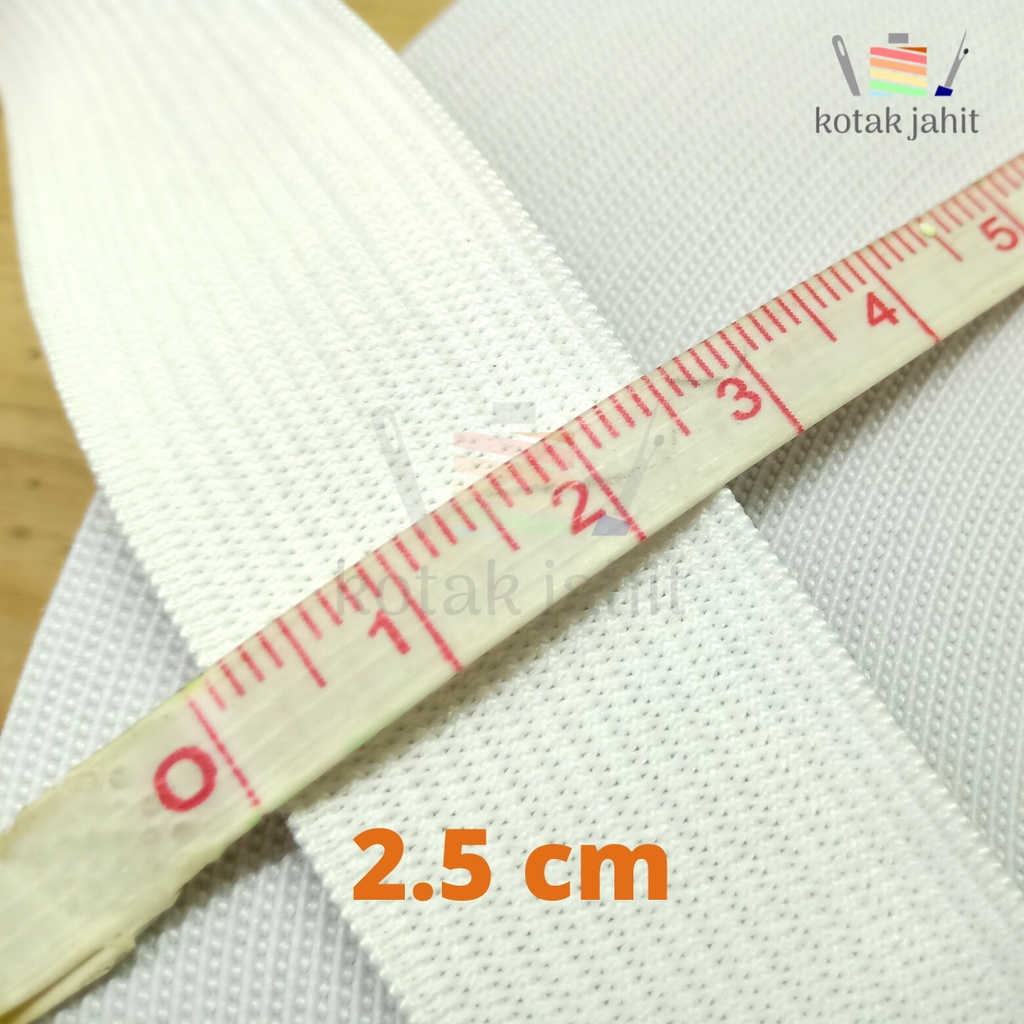 karet elastis besar lebar per meter ukuran 2cm 2.5cm 3cm merk merek bell elastic elastik ban pinggang celana rok konektor masker hijab 2 cm 2.5 cm 3 cm 1 , 3/4 , 1 1/4 inchi inch warna putih