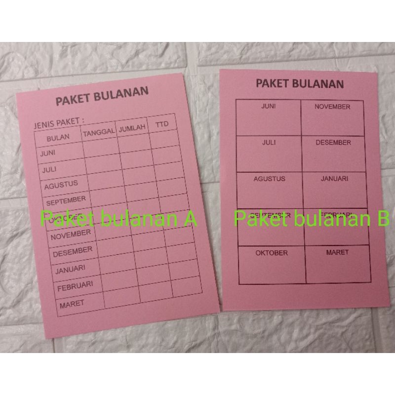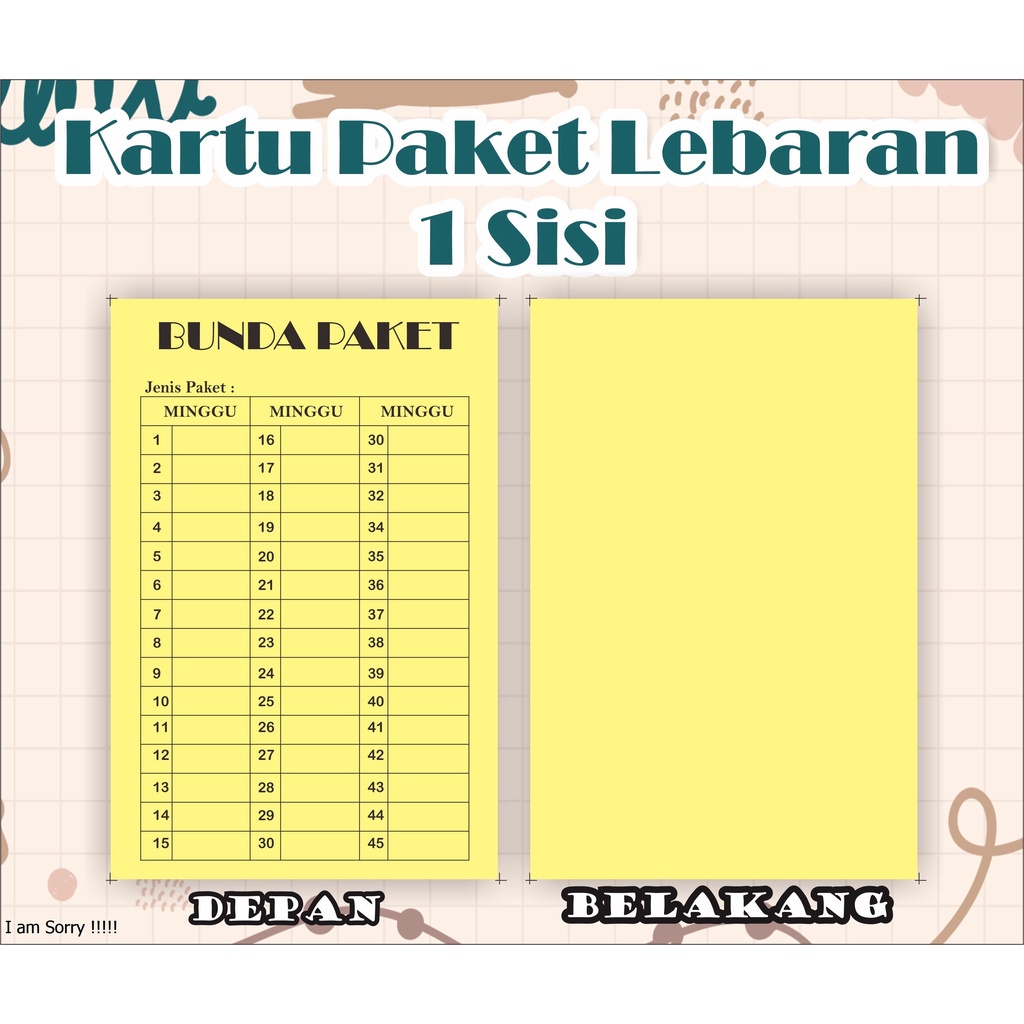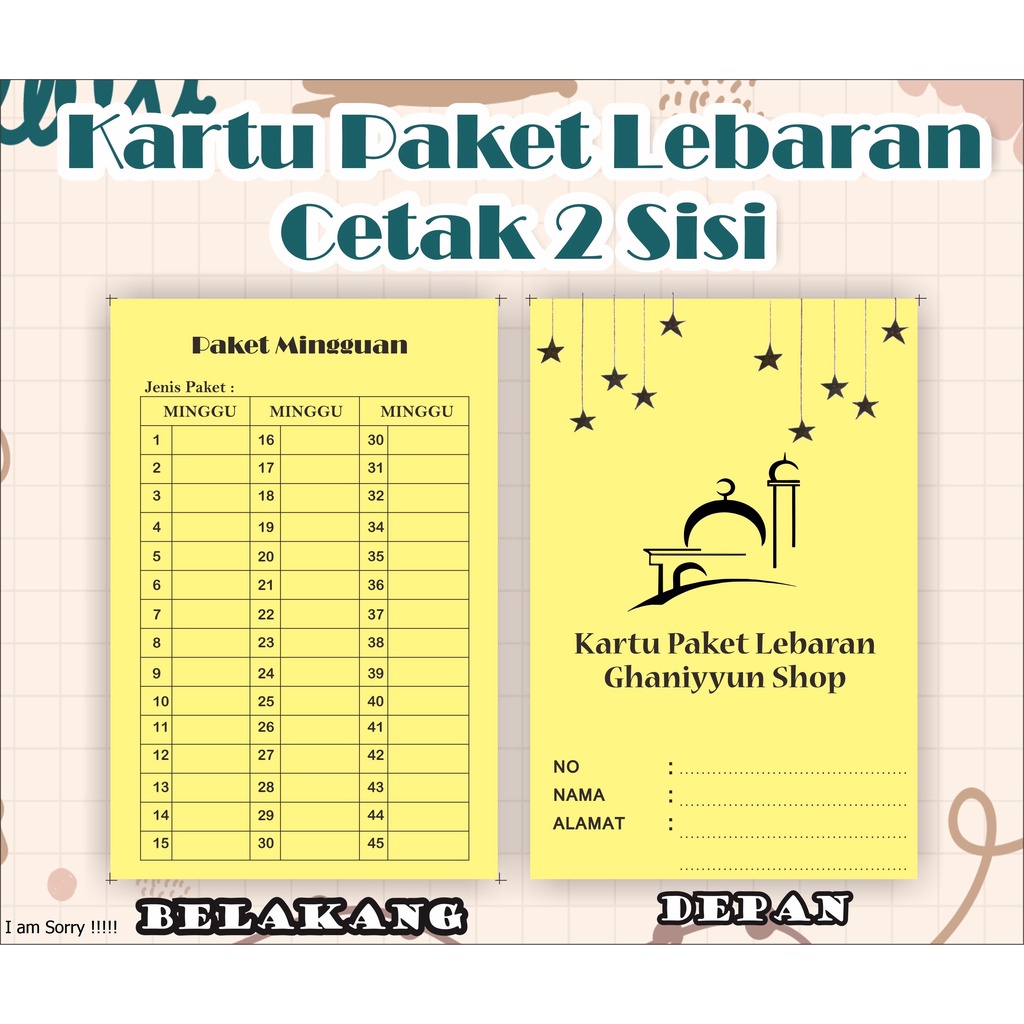 kartu paket lebaran/aseptor/iuran/kartu paket tabungan/kartu SPP bisa custom