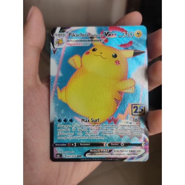 kartu pokemon pikachu berselancar Vmax V dynamax RRR pokemon 25th max surf full art booster pack 022/028 new original tcg card indonesia