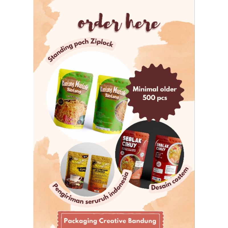 Cetak kemasan costum model standing pouch ziplock/klip