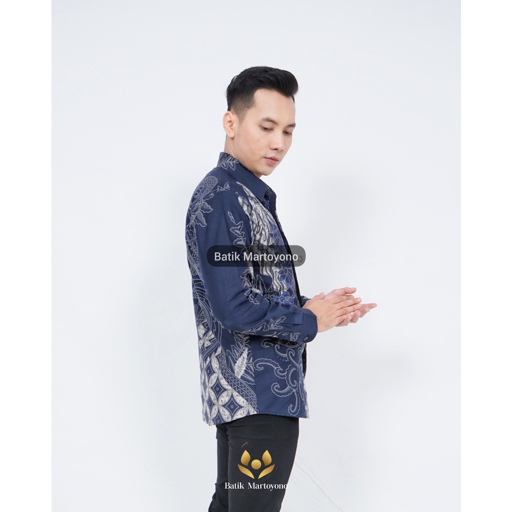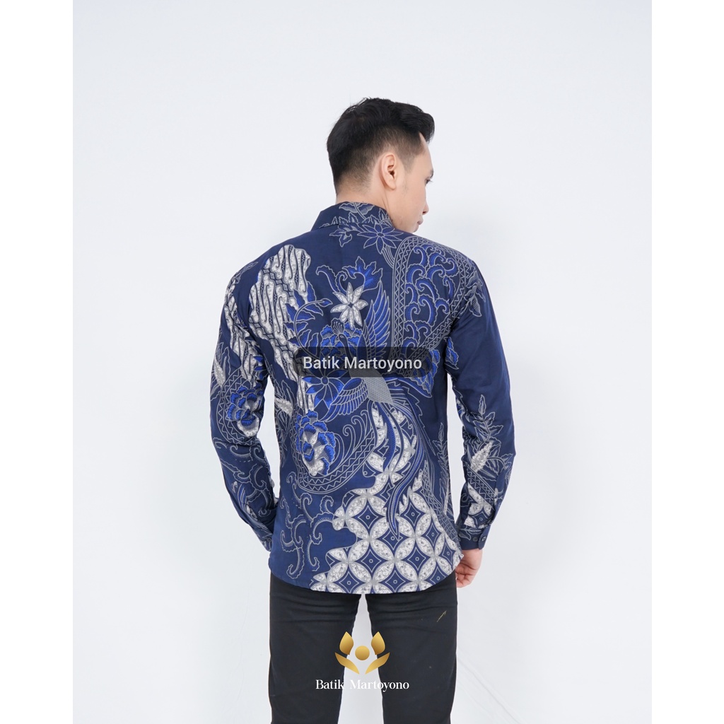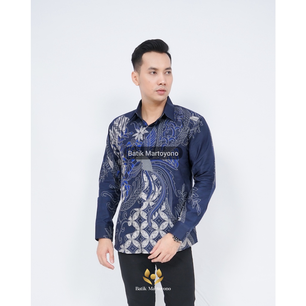PEKSI BIRU batik terbaru batik pria lengan panjang premium baju batik cowok warna biru kemeja batik slimfit