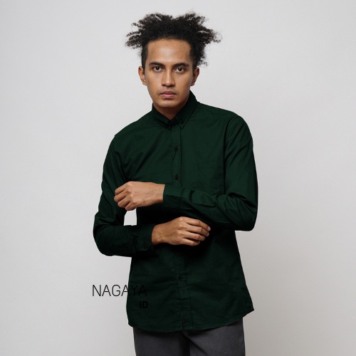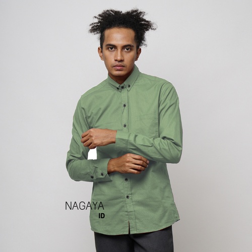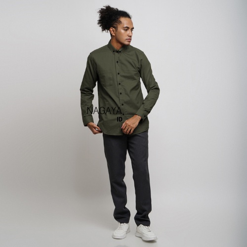 KEMEJA PRIA LENGAN PANJANG POLOS HUJAU ARMI BASIC CASUAL SLIM FIT LINEN RAMI
