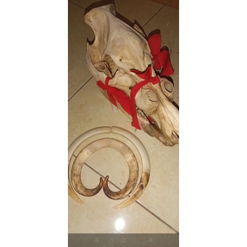 kepala babi rusa - Taring babi rusa melingkar original asli