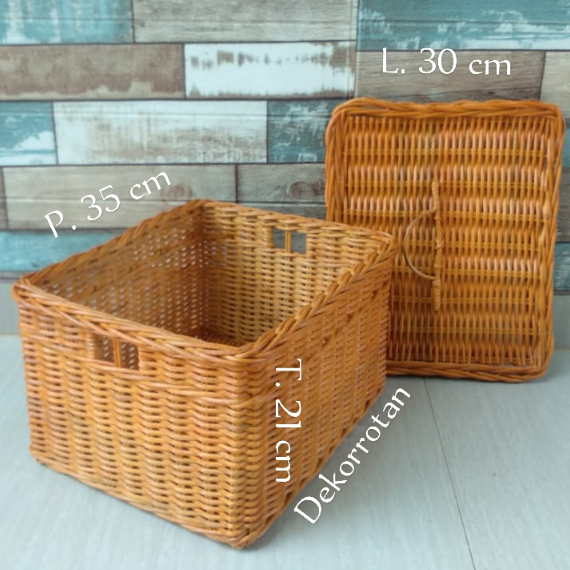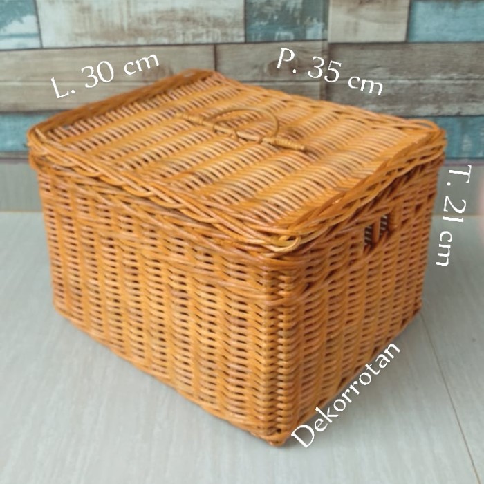 keranjang rotan persegi tutup besar tempat penyimpanan barang serbaguna
