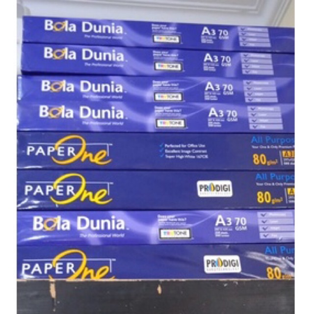 kertas paper one / bola dunia ukuran A3 L 80 70 GSM 500 lembar 1 ream FREE PENCIL