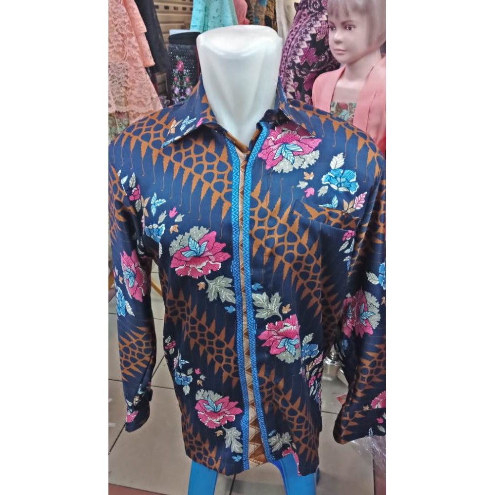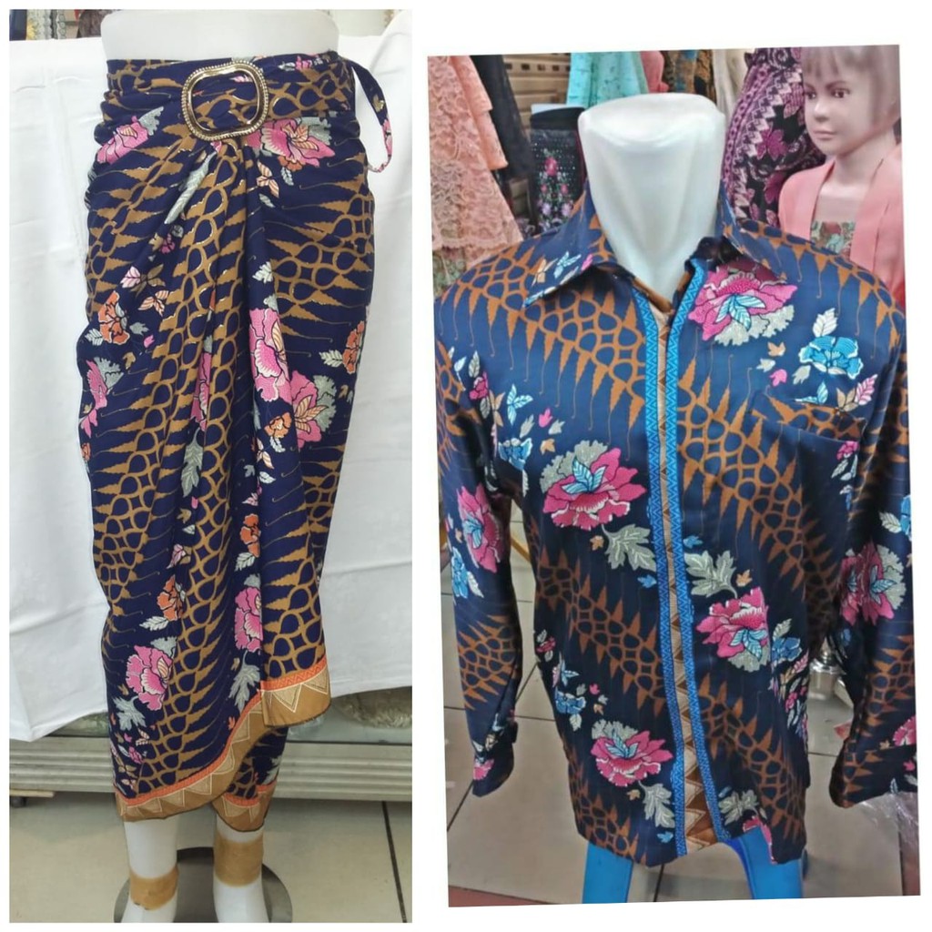 kheisa collection - Couple Rok Lilit & Kemeja Batik Panjang - Kembang Sepatu Navy