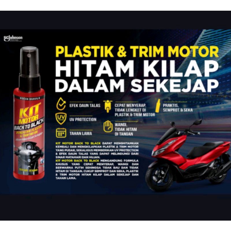 kit motor back to black trim restorer 115ml penghitam body bodi motor