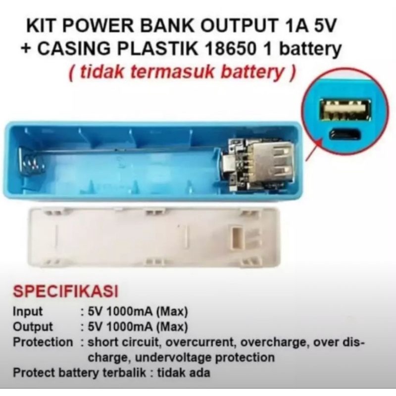 kit power bank 1A 5V Slot Baterai/Batre 18650 + Casing Plastik