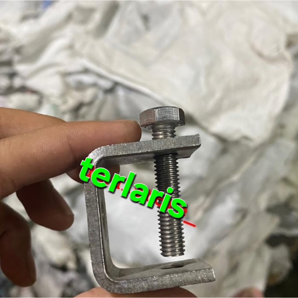 klem stainless C Beam clamp U stainless 304 KLEM BIASA *ketebalan 5mm *baut ukuran 8mm *panjang 4cm