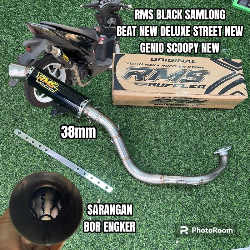 knalpot rms muffler samlong black sarangan bor engker beat deluxe beat new street new scoopy new genio inlet 38mm