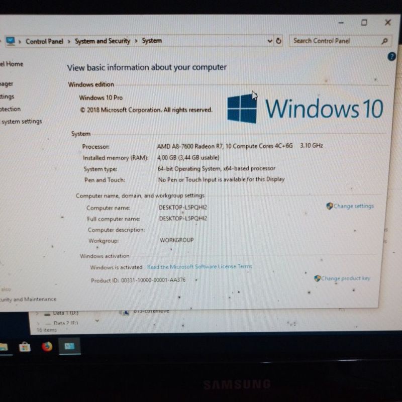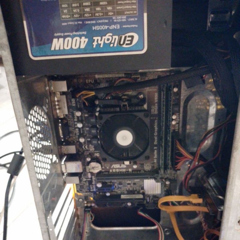 komputer PC bekas murah prosesor AMD A8 7600 3,10 GHz VGA Radeon R7 ram 4 giga harddisk 500 giga mainboard Asus A68HM-E Windows 10 64X + aplikasi standart