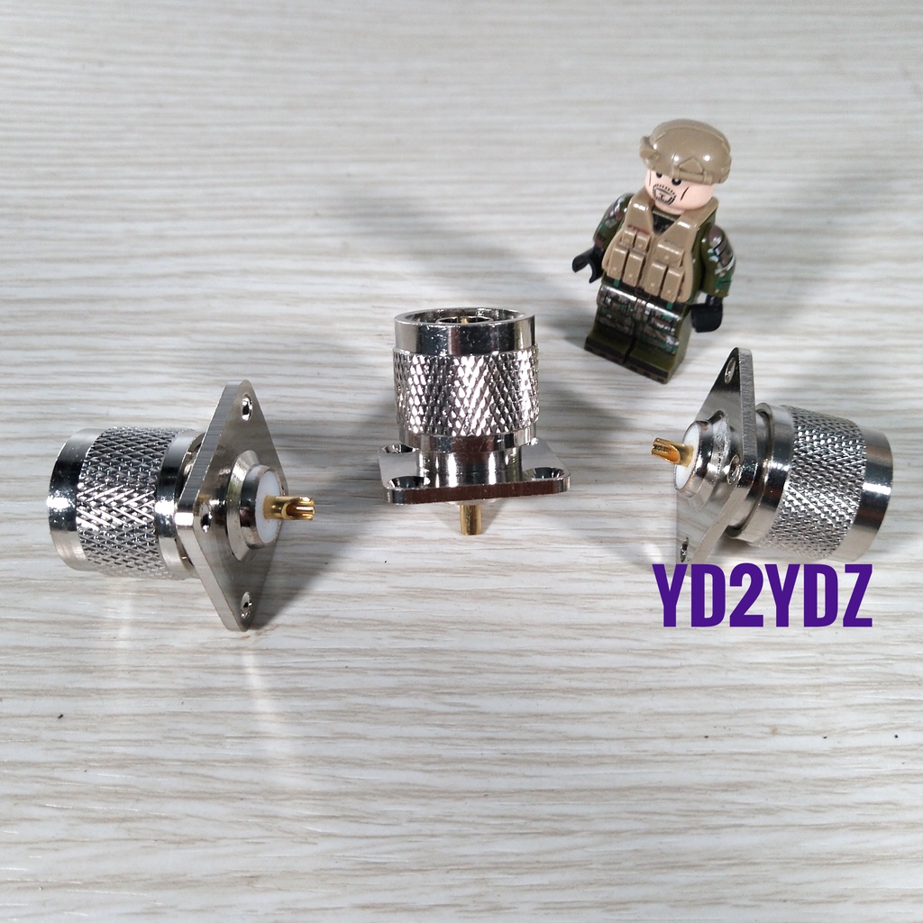 konektor n male teflon panel rf connector chassis body kotak mount 4 lubang baut antena antenna 50ohm radio