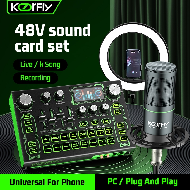 koorfly-KF01 sound card set Audio Bluetooth External Peralatan Bernyanyi atau siaran langsung dengan headphones dan microphone