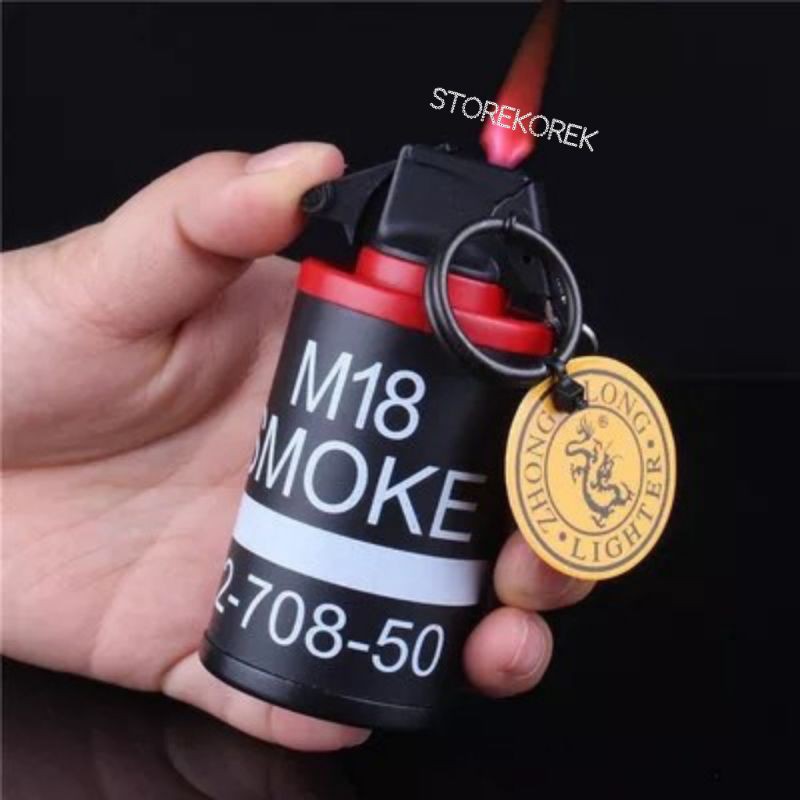 korek gas api dan asbak smoke m18 BIG Korek Api Gas Unik Model Granat Smoke Bom M18