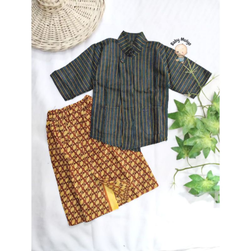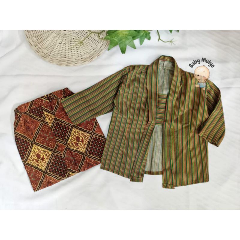 kostum potoshot/ stelan surjan bayi /SETELAN BAJU Surjan / Lurik Anak + Rok Jarik Batik dan Baju Kebaya Kutu Baru Anak