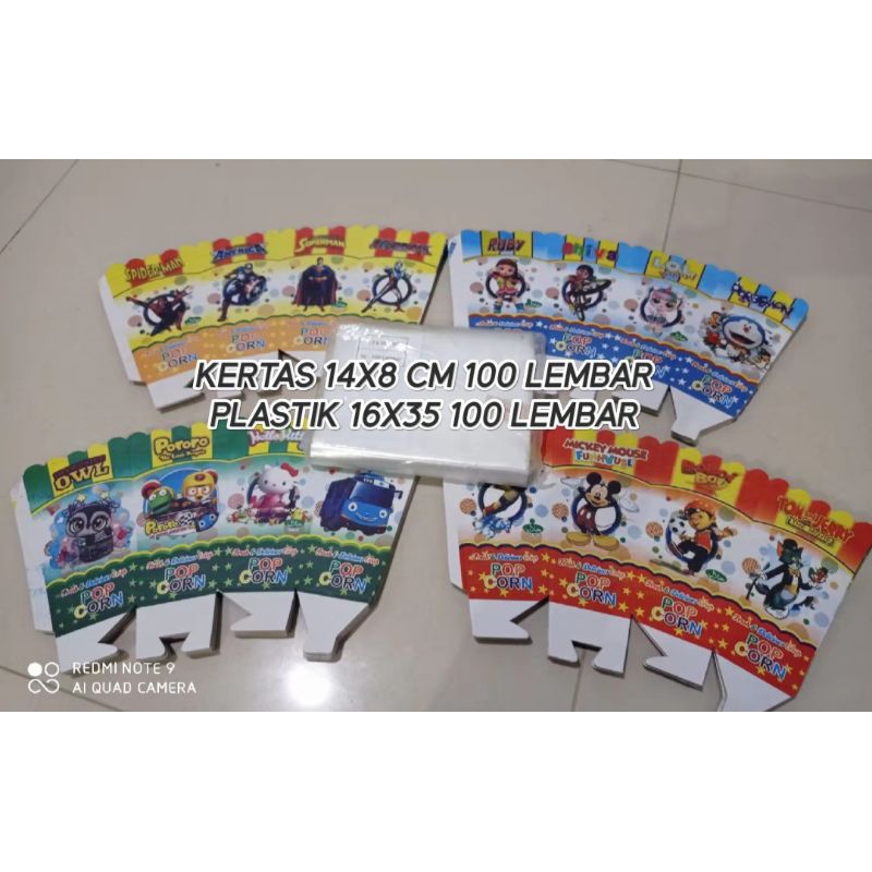 kotak popcorn 14x8 cm / kertas popcorn 15x8 cm / kemasan popcorn ukuran 15x8 cm