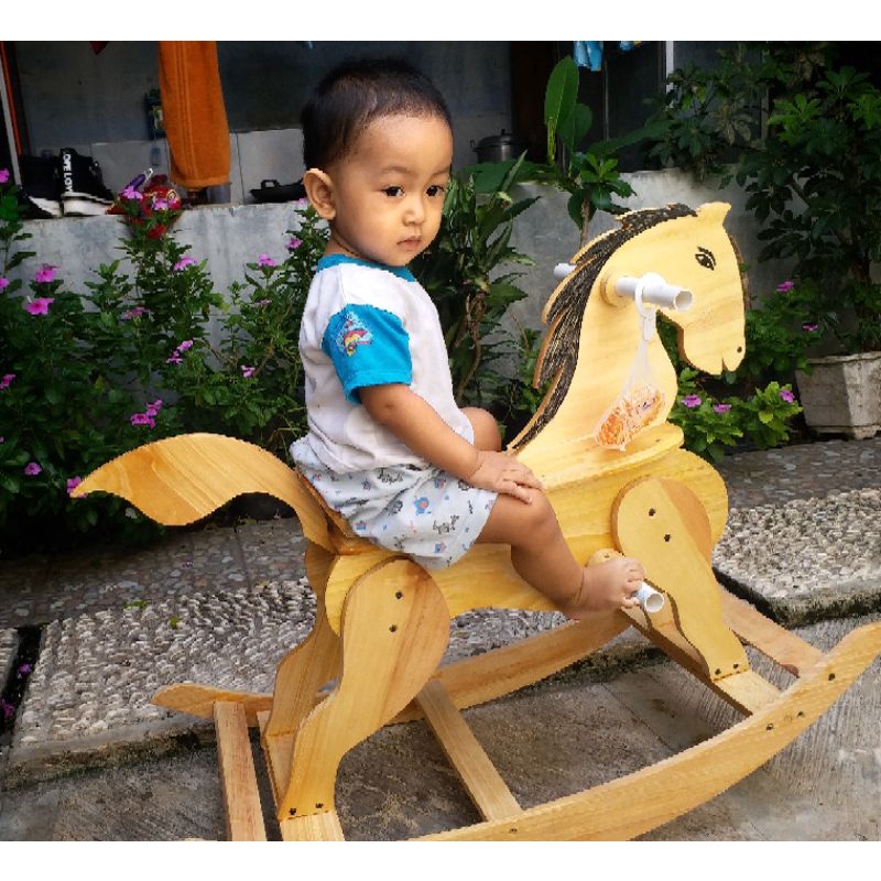 kuda goyang kayu/kuda kudaan anak/mainan kuda kudaan