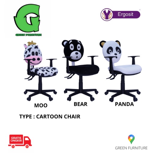 kursi belajar anak ergosit cartoon chair bear panda moo kursi putar kursi anak kursi komputer