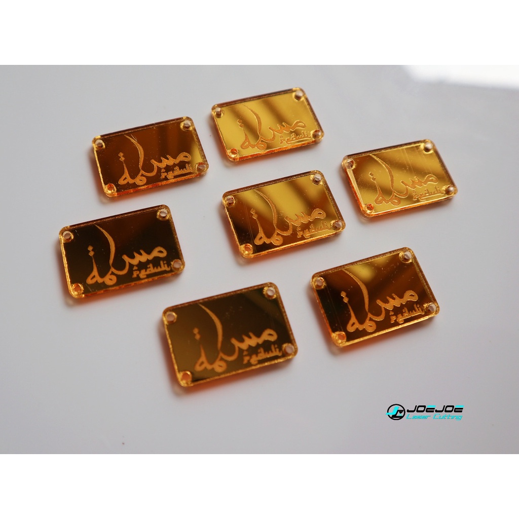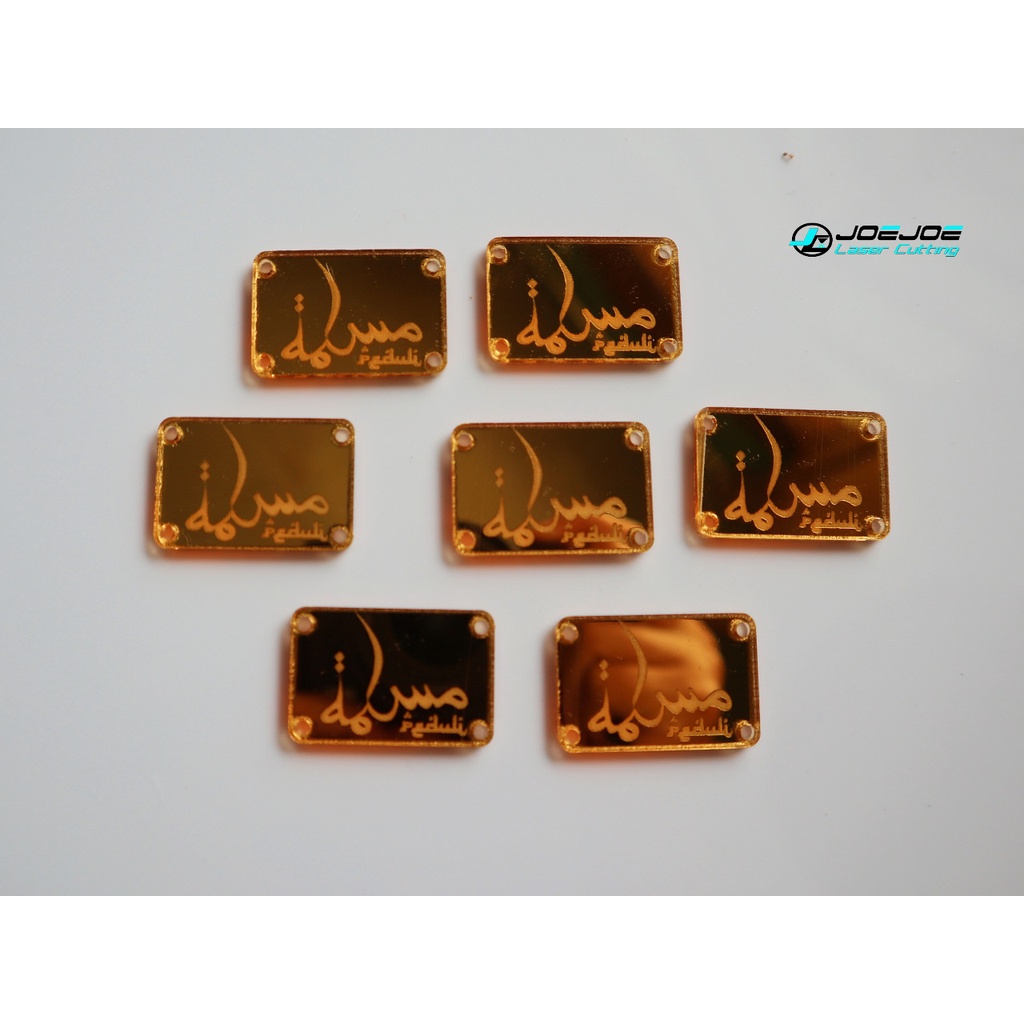 label akrilik untuk baju/kerudung (bebas Desain sesukamu)
