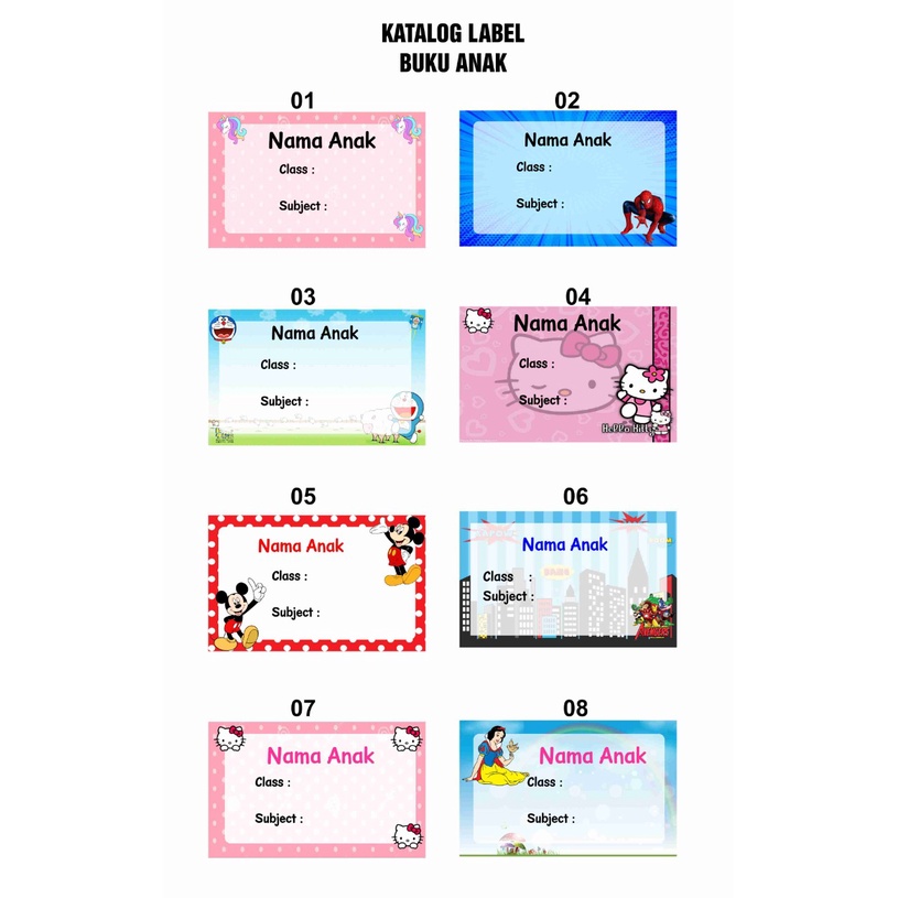 CulOri. Label dan Stiker Buku Anak Sekolah CUSTOM Karakter dan Foto