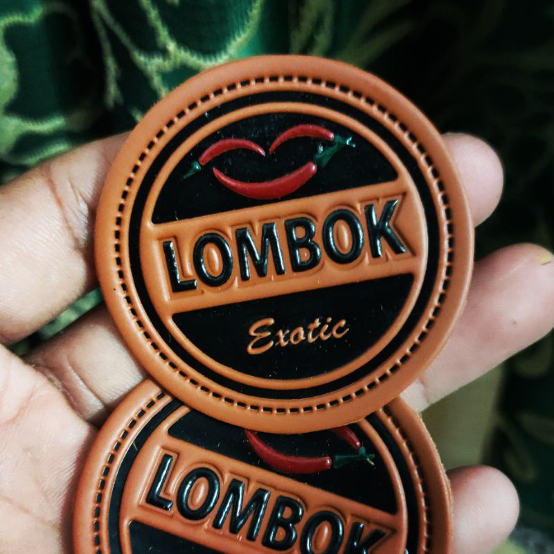 label kulit sentetis custom embos sablon 3 warna ukuran 5x5 cm