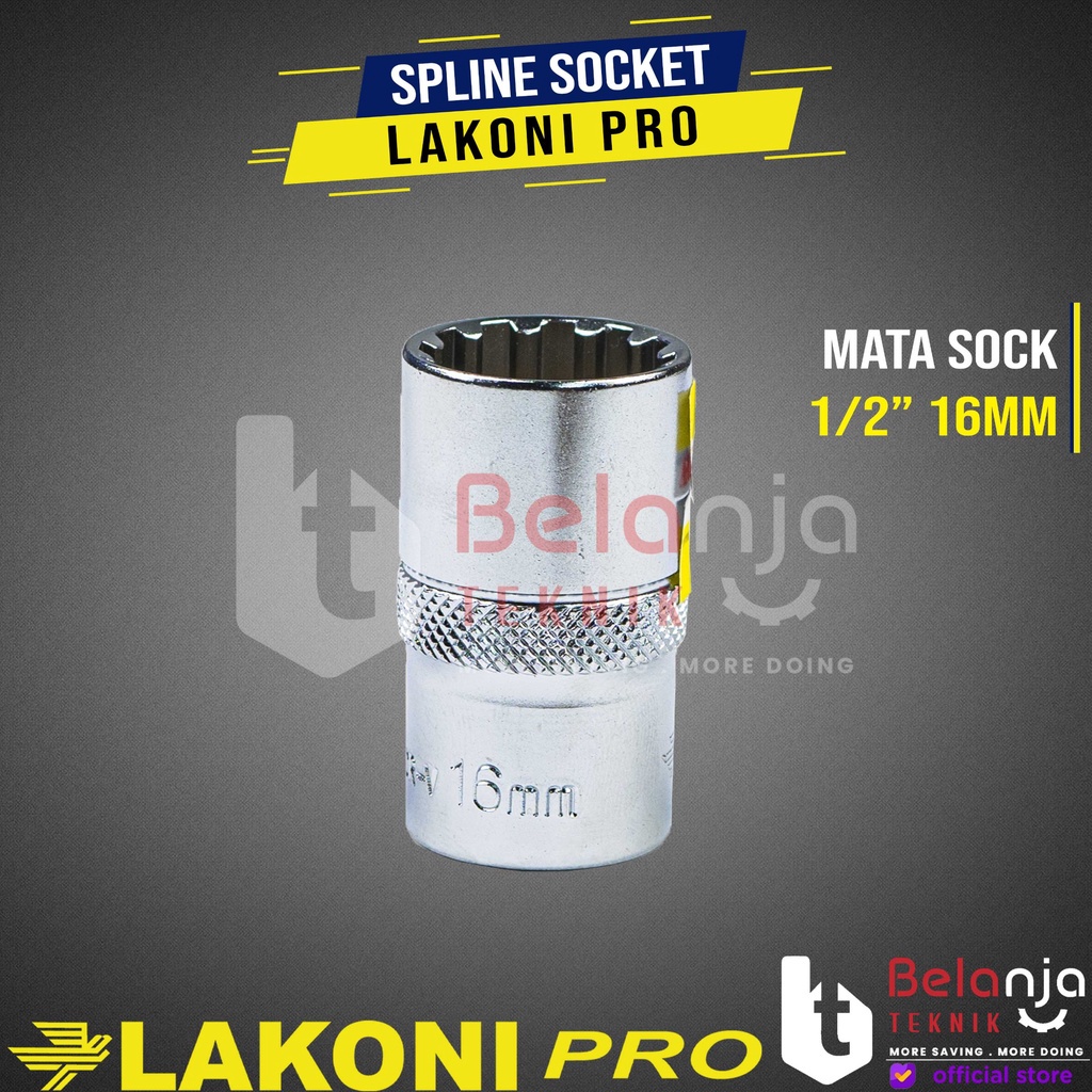 LAKONI PRO Spline Socket 1/2 Inch 16MM Mata Kunci Shock 1/2" Sok 16 MM