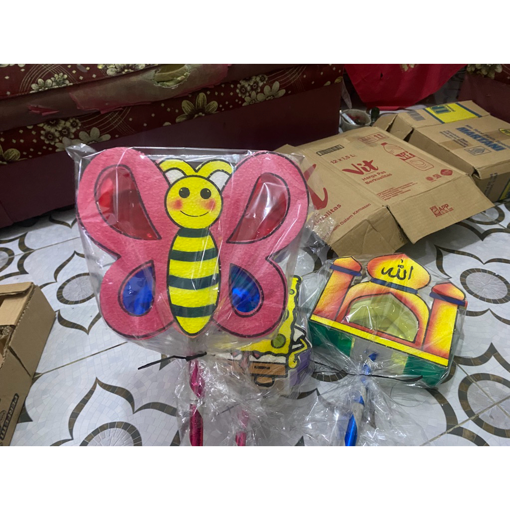 lampion takbir karakter lucu dengan desain unik dan warna cerah menggunakan lampu led warna di dalamnya