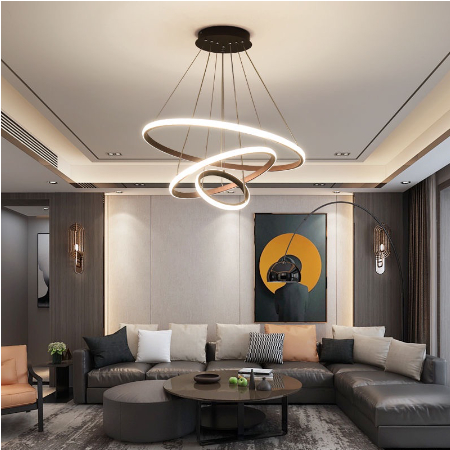 lampu led gantung ruang tamu minimalis Lamp chandelier 3 ring mewah