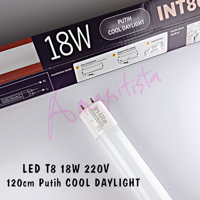 lampu neon tl led t8 inlite 18w 6500k putih daylight 1800lm 220v 120cm tokolaris1629