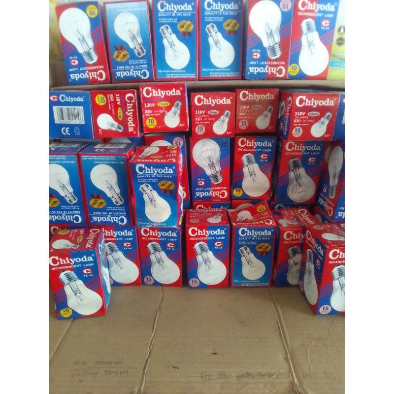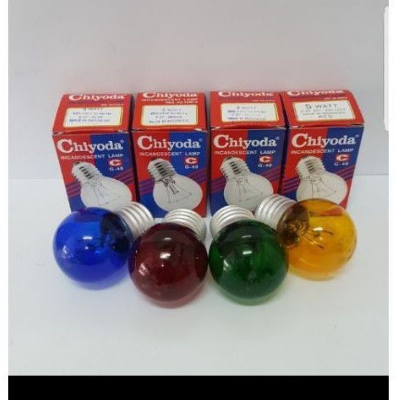 lampu pijar chiyoda 5,25 watt,eterna 5,15,25, Watt / Lampu Dop lampu pijar bodi besar terlaris termurah lampu dekorasi 5 wat warna merah dan biru