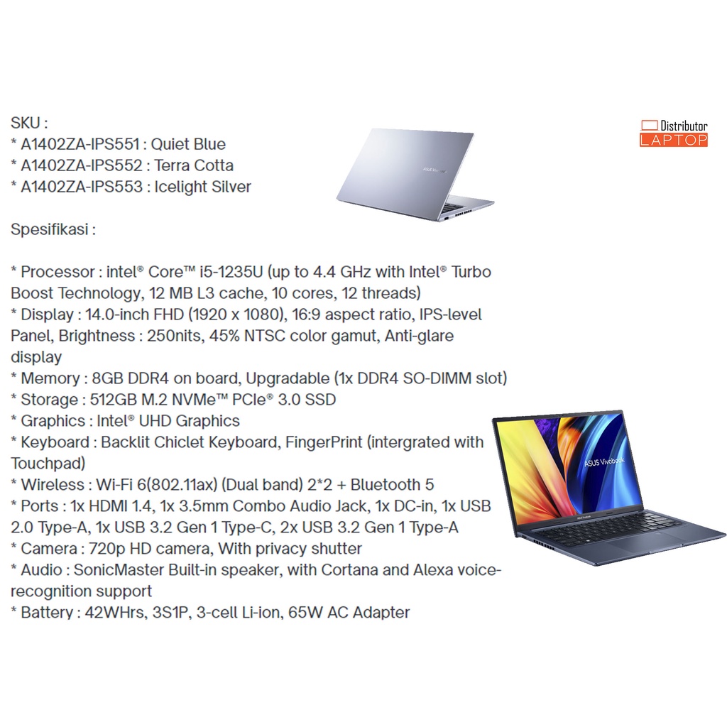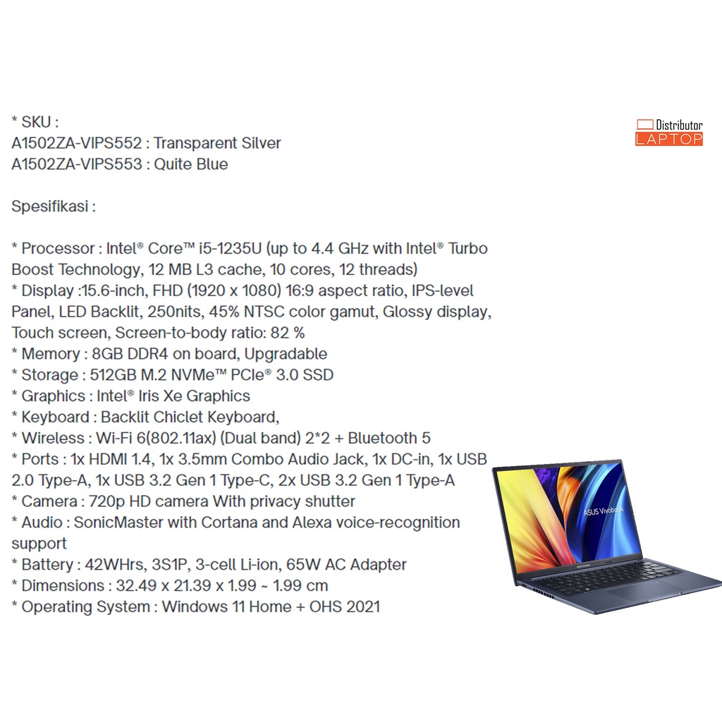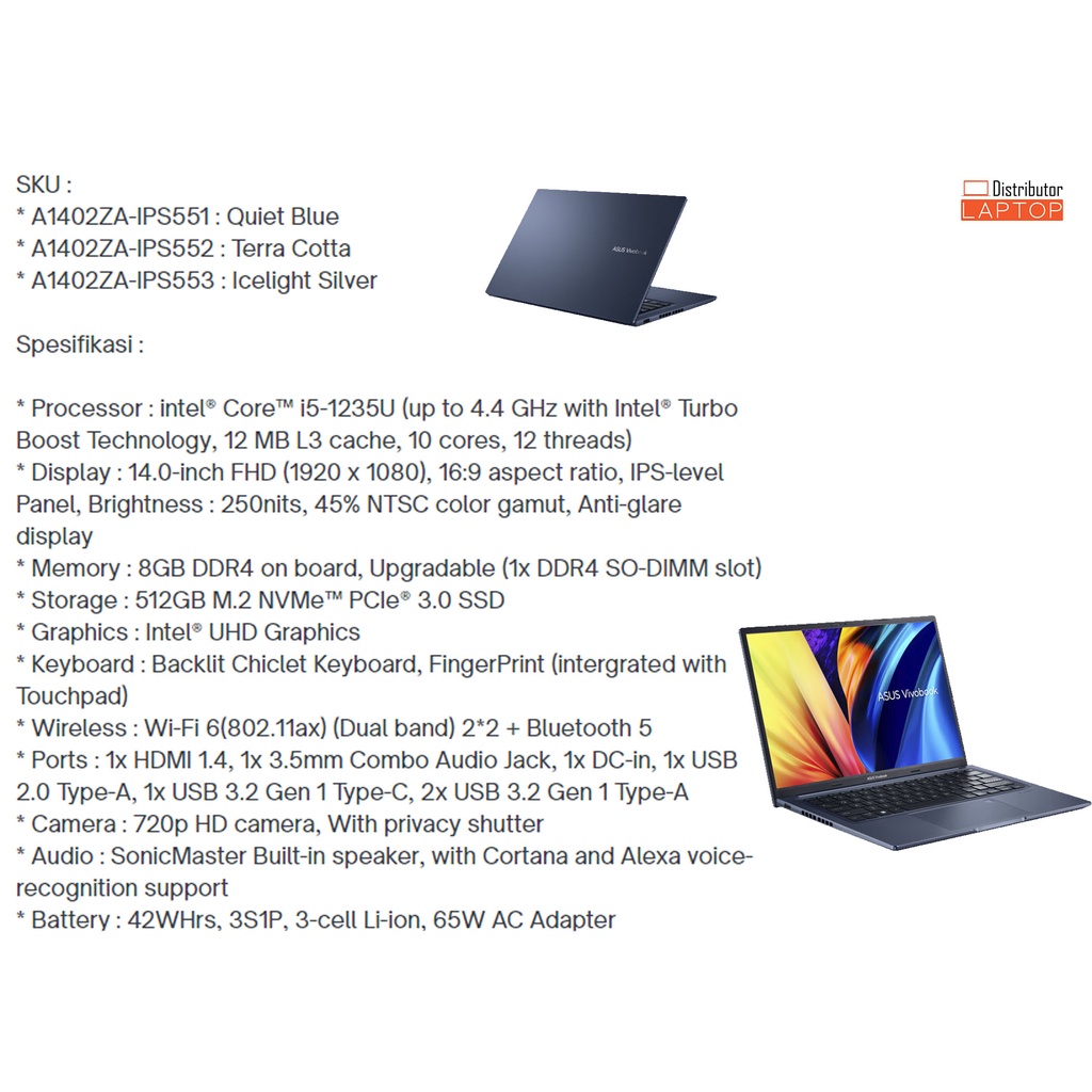 LAPTOP ASUS VIVOBOOK 13 14 15 / INTEL CORE i5 - AMD RYZEN 5 / GARANSI RESMI ASUS - Cicilan 0%
