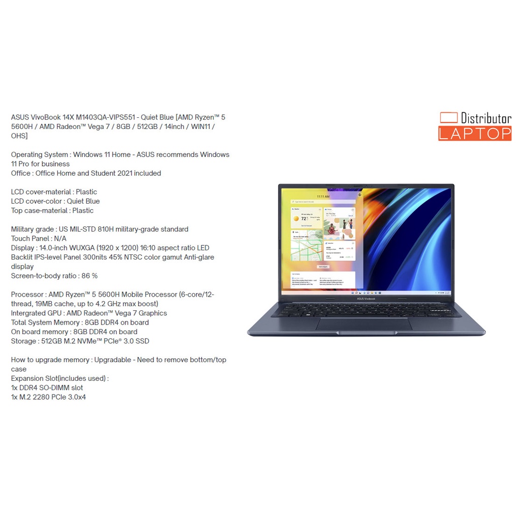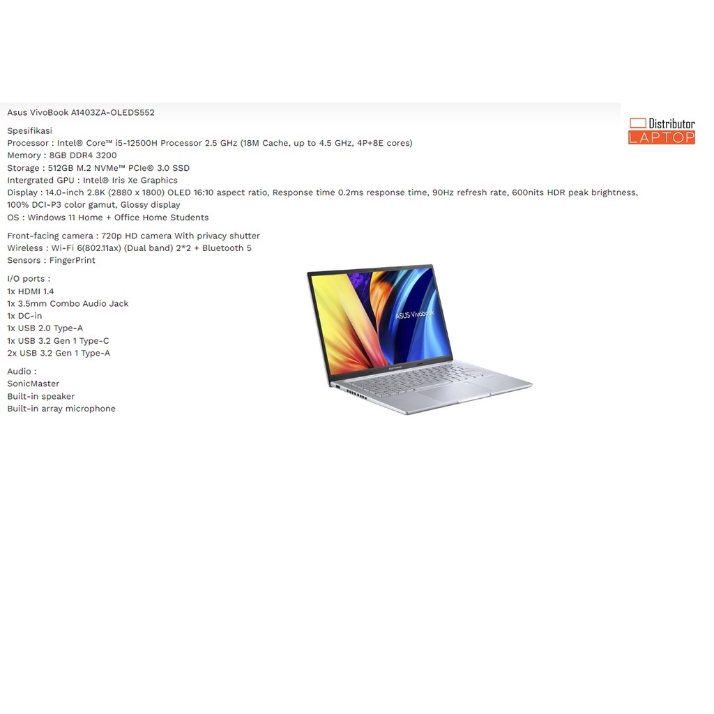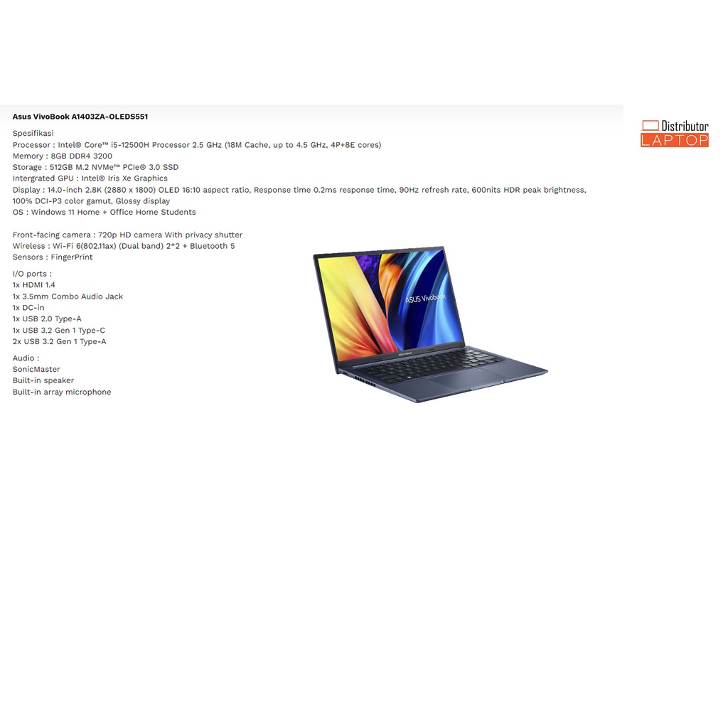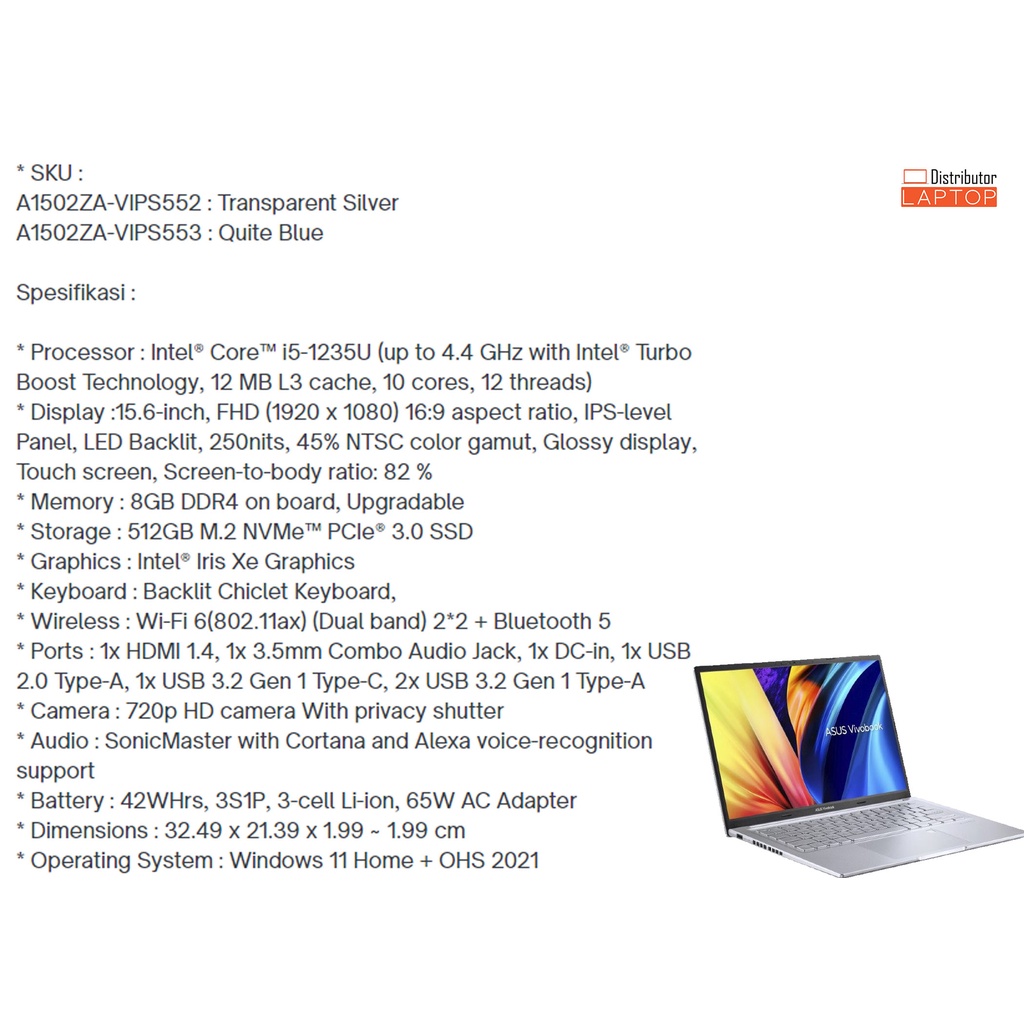 LAPTOP ASUS VIVOBOOK 13 14 15 / INTEL CORE i5 - AMD RYZEN 5 / GARANSI RESMI ASUS - Cicilan 0%