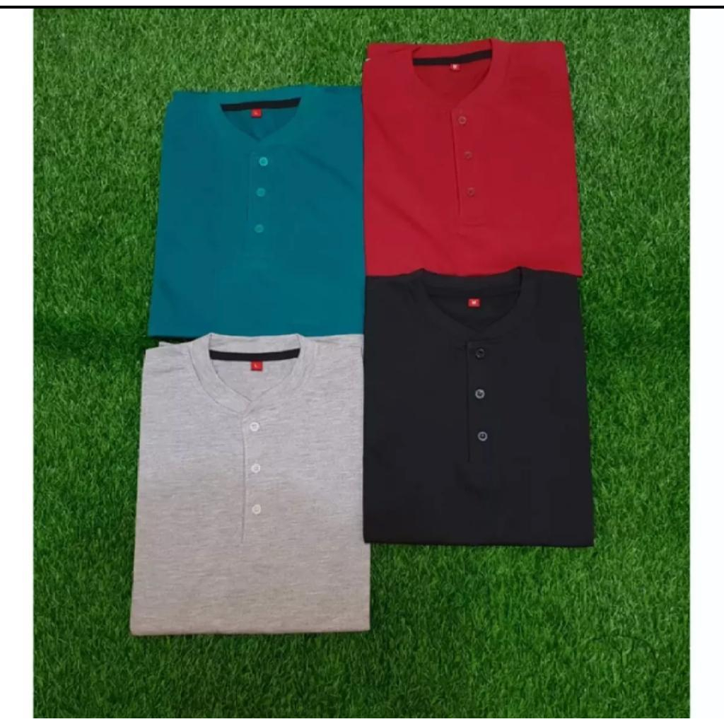 liso wear Kaos hanley kancing polos pria seragam lengan pendek / kaos henley polos kancing