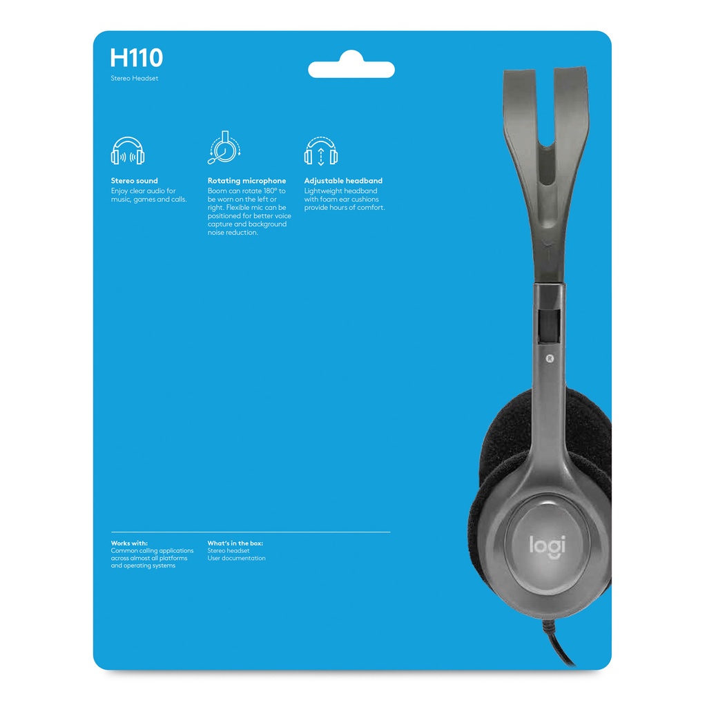 Logitech H110 Headset Stereo dengan Headband Adjustable dan Dual Plug