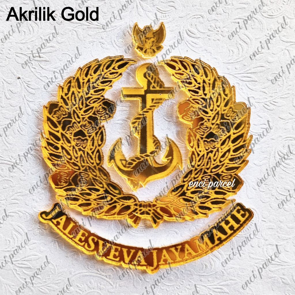 logo jalesveva jayamahe lambang TNI AL tentara nasional indonesia angkatan laut motto institusi profesi bentuk miniatur garuda jangkar rantai dekorasi hiasan mahar bahan akrilik gold rosegold silver triplek MDF